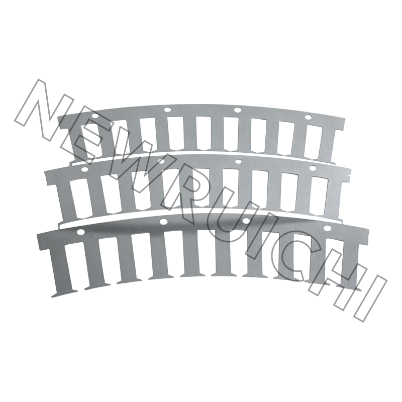 Ang AC motor stator at rotor lamination ay ginawa gamit ang mataas na kalidad na non-oriented na silicon steel na sinamahan ng precision stamping technology. Ang bawat lamination ay pinoproseso nang may mahigpit na kontrol sa pagkakapareho ng kapal, magnetic properties, at dimensional na katumpakan, na tinitiyak ang matatag na electromagnetic na pagganap sa panahon ng pagpapatakbo ng motor. Ang mga stamping tool at dies ay na-optimize upang mabawasan ang mga burr, deformation, at konsentrasyon ng stress, na tumutulong na mapabuti ang pagkakapare-pareho ng stacking at bawasan ang mga karagdagang kinakailangan sa pagproseso sa mga susunod na hakbang sa pagmamanupaktura.
